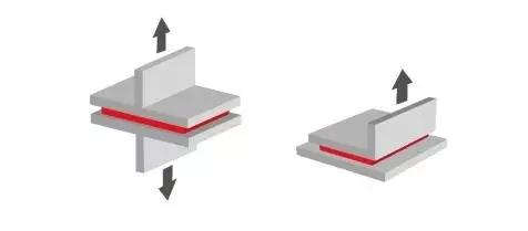 兩個(gè)被粘物使用熱熔膠粘合后,在存放和使用的過(guò)程中會(huì)受到以下兩種類型的外力作用而被破壞: